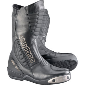 Les bottes Daytona vous procurent une sensation particulière sur les circuits. Le modèle *Strive GTX* de Daytona constitue le contact parfait entre votre pied et le sélecteur de vitesses et le frein. Avec ces bottes de sport confortables, vous maîtriserez votre moto avec précision et facilité. Par tous les temps, la membrane GORE-TEX de grande qualité protège vos pieds contre les intempéries et vous garantit une agréable régulation thermique, même lorsque vous faites chauffer la piste.