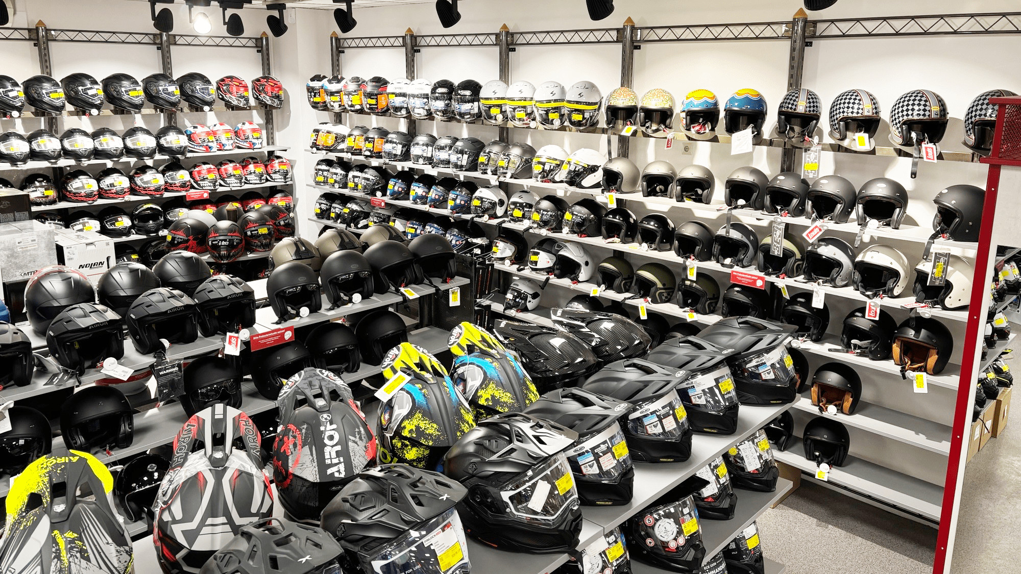 Chez nous, tu trouveras tout ce dont toi et ta moto avez besoin pour le plus beau hobby du monde : que tu aies besoin d'un nouveau casque, d'une veste ou d'un pantalon en cuir ou en textile, de bottes, d'outils, de piÚces de montage et de tout ce qui concerne la moto : Chez nous, tu es à la bonne adresse. Et en plus, tu bénéficieras des conseils spécialisés de notre équipe de service avec MOTORAD IM HERZEN.